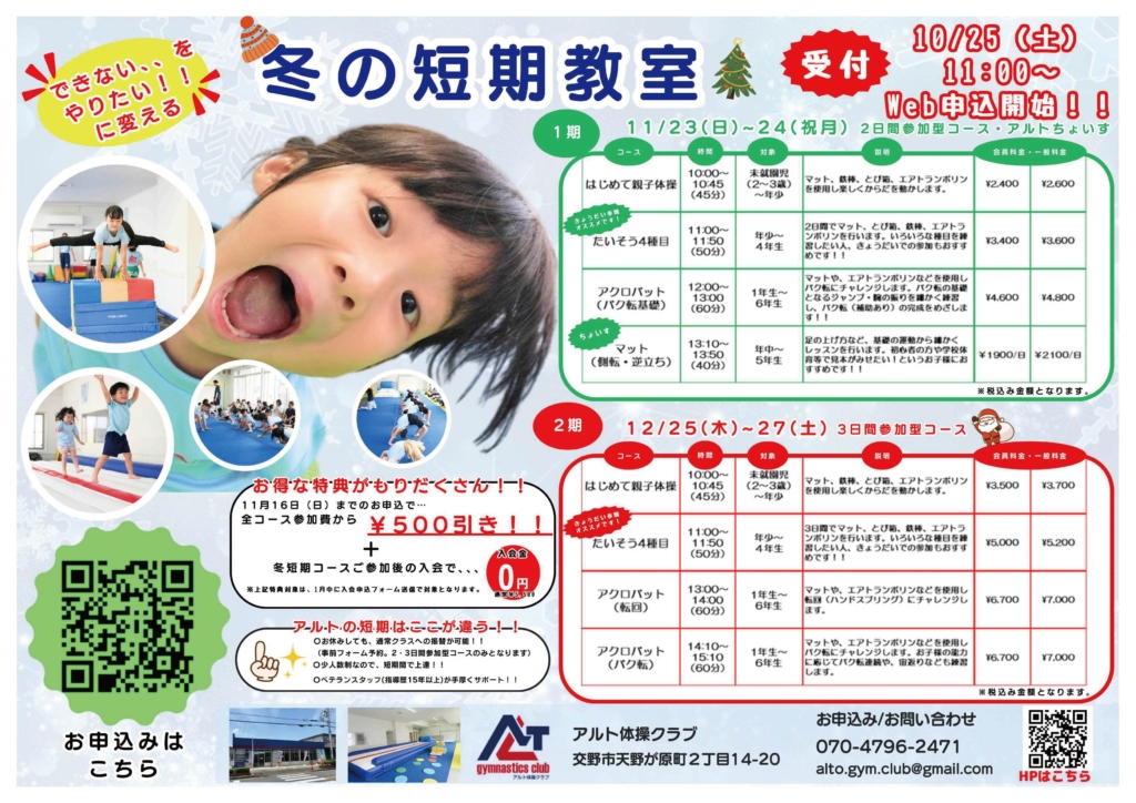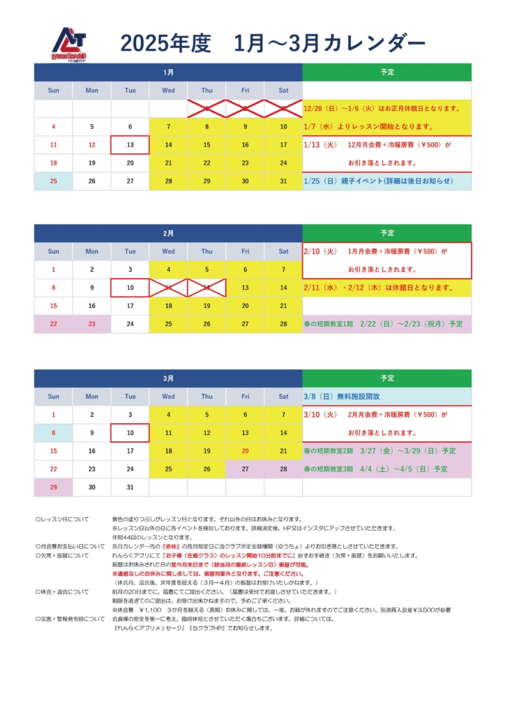 | 親子体操クラス 2歳~3歳 | ¥4,620- |